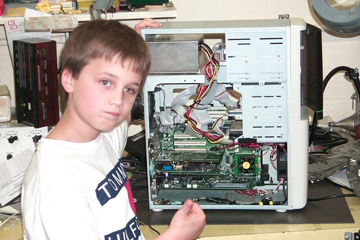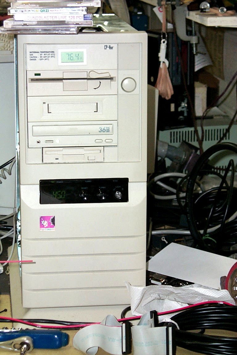 Blaze with his P233 Also built in March of 2000. Wow! I was building 3 at one time. LOL! Actually this was mine that I was redoing for him. It has a P233 and now also has a VooDoo PCI 3000 video card in it. 128 megs of PC 66 memory. With a TX Chipset it was as fast as the buses were then. Hell that was a scream over the original EDO 60 ns chips in there in 4 stacks of 32 megs each. Know anyone that needs these? I still have them. PC 66 is 10 ns and was 20 points higher in bench mark. He still has the 33.6 K modem in there as well. LOL! I made it to play games at the time not really for the internet. I will replace it this time and he will get my P3 600 with a different MoBo of course. And a new 56k modem as well as a network card I already have for him to run cable. It has a AWE 32 Sound card that I got given to me. LOL! Can't argue free! |