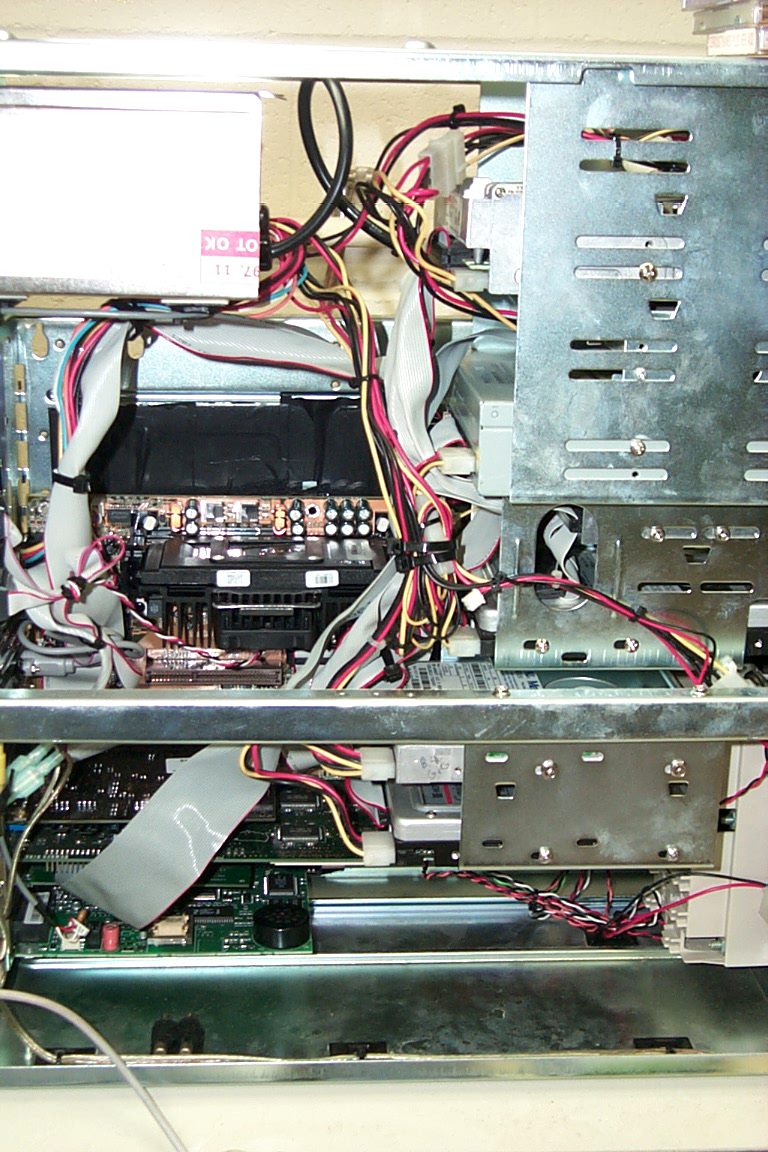 What's in it Well this is a Soyo SY-6BB mother board. It has 3 HD a Maxtor 30 gig 5400 rpm, a Maxtor 8.4 gig and a WD 6.4 gig both 5400 rpm. It has the better older ISA US Robotics 56K Modem. That modem screams for as far as modems go and almost always gets a 53,000 connection through AT&T. Did to other Net providers as well. It just works great. I have a PCI US Robotics in the home computer and it doesn't work nearly as well as this one. The 36x CD ROM shown here in in the junk yard now. That crappy thing broke in 4 months. It now has a nice generic 50x that works great. I forget who makes it. High Value or some shit like that. Well it has 128 megs of RAM, a now VooDoo 3000 card AGP which was also in the home computer till I got the VooDoo 5500 in it. It is like I said a Pentium 2 450. And believe it or not is a great computer. Off of Nortons Bench mark test it will pull in a 220 where the 600 at home will pull in a 330 so not bad. Nothing fancy about it. I only have a NEC 15XV 15 inch monitor with it. |